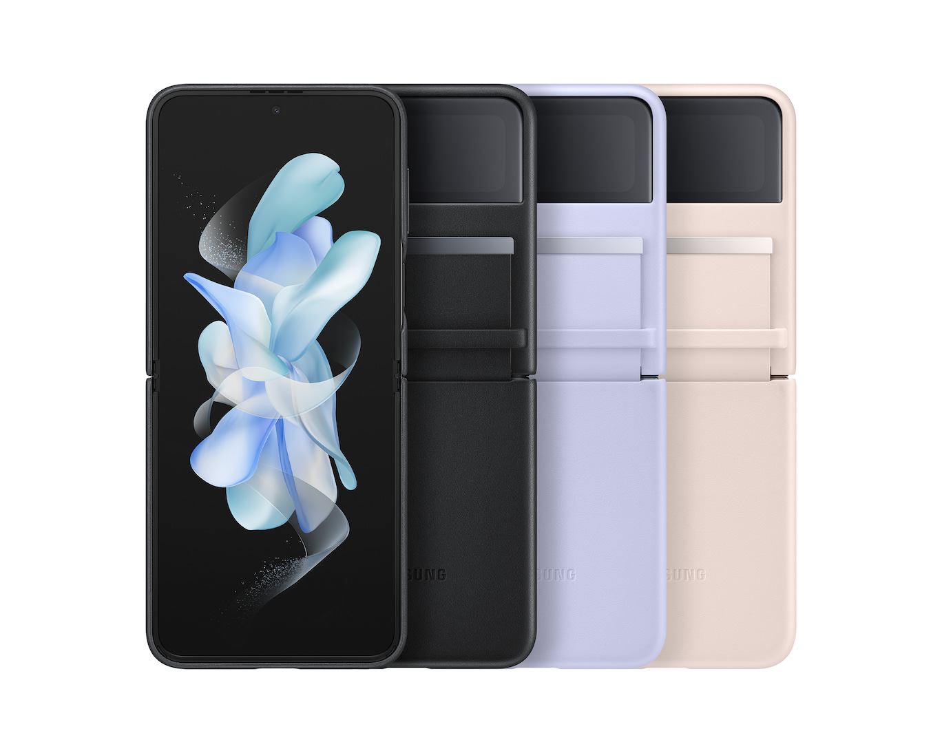 Enveloppe ton Galaxy Z Flip4 d’élégant cuir véritable. Disponible dans de magnifiques coloris classiques, la coque en cuir avec rabat habille ton smartphone d’un style haut de gamme.