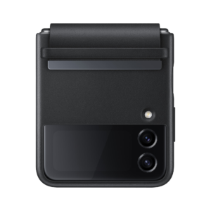 Une protection totale. La charnière du Galaxy Z Flip4 est protégée par un rabat en cuir véritable qui permet d’éviter les dommages causés par les chocs et les coups, offrant ainsi une protection premium supplémentaire.