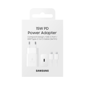 Le SAMSUNG ACC 15W Wall Charger C-to-C est un adaptateur mural USB-C conçu pour une charge stable et sécurisée au quotidien. Idéal comme chargeur de remplacement ou secondaire, il est compatible avec de nombreux appareils Samsung Galaxy et autres appareils USB-C.