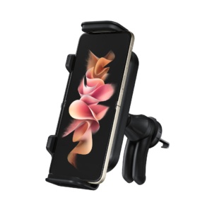 Le chargeur sans fil pour voiture pivote, afin que vous puissiez visualiser votre écran en mode paysage ou portrait. Il se fixe sur les grilles d’aération de votre voiture en toute sécurité pour fournir un soutien suffisant à votre appareil.
